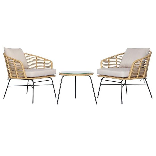 Zestaw składa się z dwóch wygodnych miejsc siedzących oraz stołu o wymiarach 52x42 cm, idealnych do relaksu przy kawie czy rozmów z bliskimi. Grube poduszki zapewniają nie tylko miękkie wsparcie dla pleców, ale także dodają elegancji całemu zestawowi.