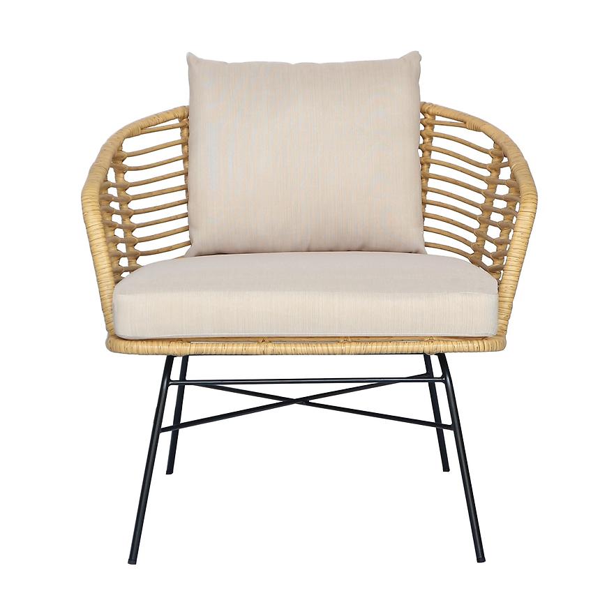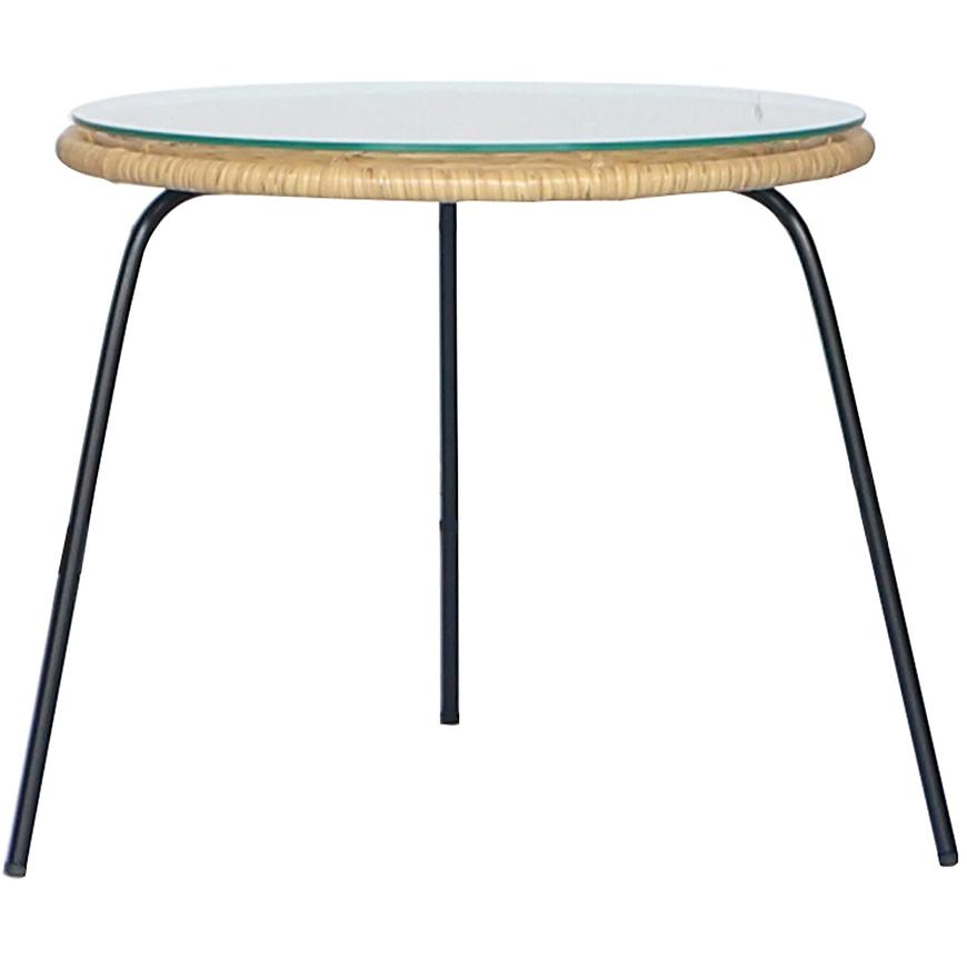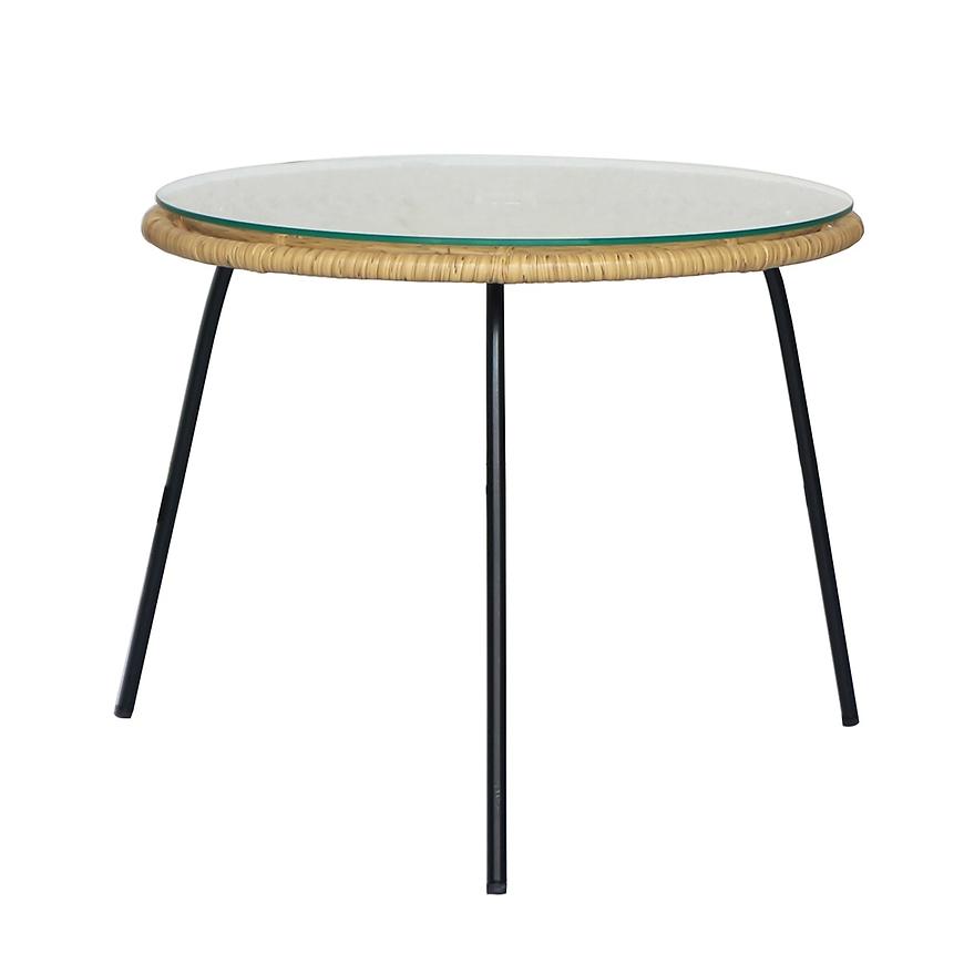 Materiał zewnętrzny, jakim jest technorattan, gwarantuje trwałość i odporność na warunki atmosferyczne. Okrągłe plecionki w modnym kolorze naturalnym harmonijnie współgrają z eleganckimi, czarnymi nogami stołu, tworząc minimalistyczną, a zarazem stylową kompozycję.