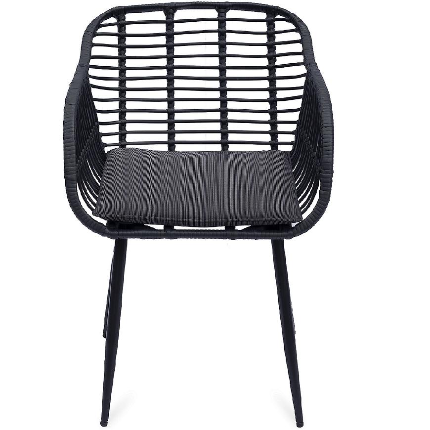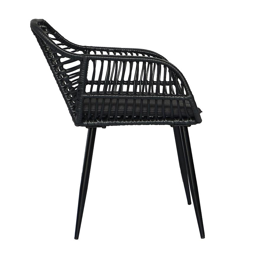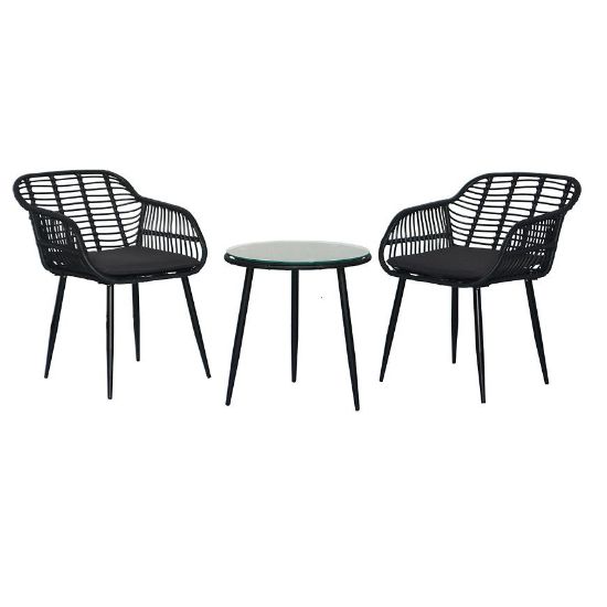 Zestaw składa się z dwóch miejsc siedzących oraz stołu o wymiarach 53x52 cm, co sprawia, że doskonale sprawdzi się nawet na niewielkich przestrzeniach. Czarne wykończenie dodaje zestawowi elegancji, jednocześnie wpisując się w nowoczesny styl.
