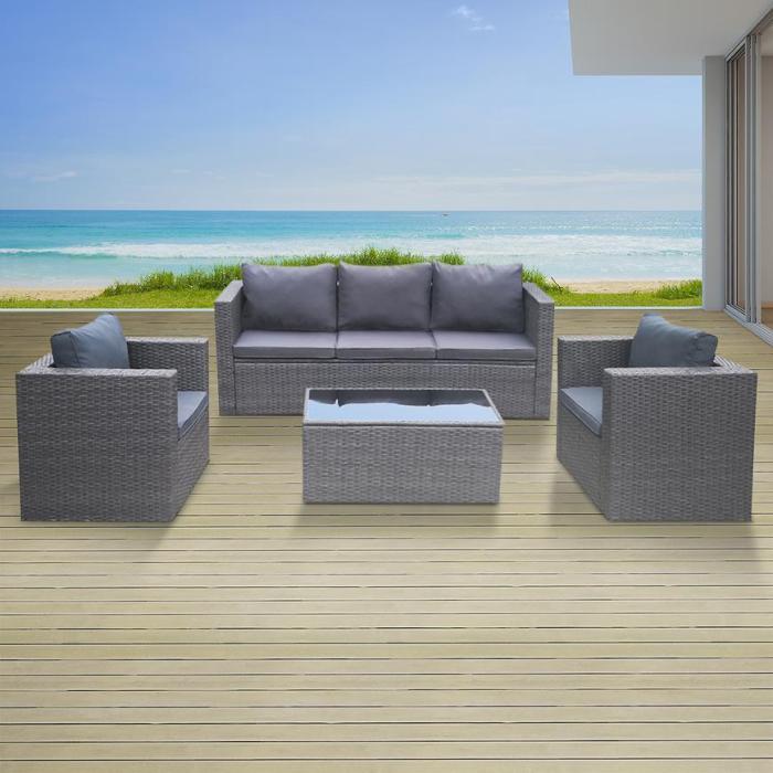 Komplet mebli technorattanowych to idealne rozwiązanie do każdego ogrodu czy na taras gdzie z przyjemnością spędzisz wszystkie letnie popołudnia i weekendy wraz ze znajomymi czy rodziną. Komplet składa się z 6 elementów wraz z poduszkami. Blat stolika jest wytrzymały, wykonany bowiem ze szkła hartowanego, konstrukcja z kolei jest metalowa.