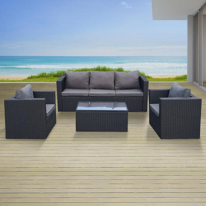 Komplet mebli technorattanowych to idealne rozwiązanie do każdego ogrodu czy na taras gdzie z przyjemnością spędzisz wszystkie letnie popołudnia i weekendy wraz ze znajomymi czy rodziną. Komplet składa się z 6 elementów wraz z poduszkami. Blat stolika jest wytrzymały, wykonany bowiem ze szkła hartowanego, konstrukcja z kolei jest metalowa.