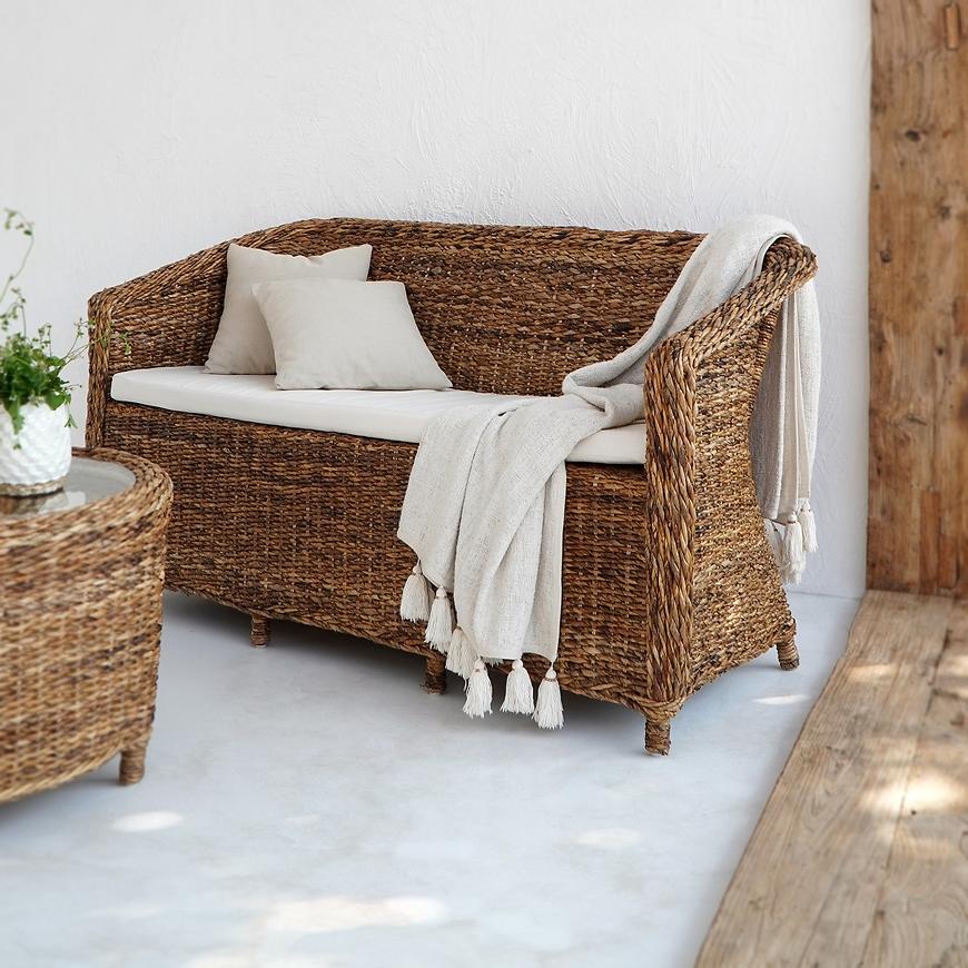 Komplet mebli ogrodowych Maribel to połączenie wyrafinowanej elegancji i solidnej trwałości, które emanuje naturalnym pięknem rattanu abaca, stworzone z pasją przez doświadczonych rzemieślników. Ten zestaw, obejmujący sofę (150x63x81) dla dwóch osób, dwa wygodne fotele oraz stolik z przezroczystym, hartowanym szklanym blatem, stanowi esencję wyjątkowości i doskonałości dla tych, którzy doceniają niepowtarzalność i wysoką jakość.