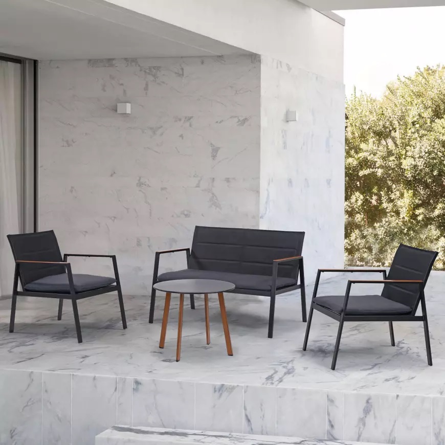 Każdy element zestawu został starannie zaprojektowany z myślą o najwyższym komforcie użytkowania. Zarówno sofa, jak i fotele wyposażone są w miękkie poduszki na siedziskach, które zapewniają wygodę nawet podczas długotrwałego relaksu na świeżym powietrzu. Poduszki te są wykonane z materiałów odpornych na warunki atmosferyczne, co sprawia, że są trwałe i łatwe w utrzymaniu czystości.