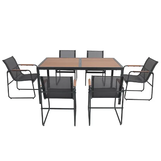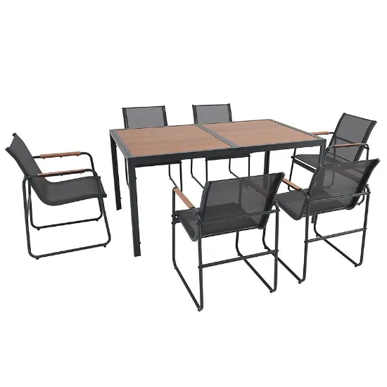 Zaproś rodzinę i przyjaciół na niezapomniane letnie chwile przy wspólnym stole! Ten nowoczesny, funkcjonalny zestaw obiadowy ogrodowy to idealne rozwiązanie dla każdego, kto ceni sobie wygodę, trwałość i styl w jednym. Przestronny stół i sześć ergonomicznych krzeseł tworzą idealną przestrzeń do relaksu i posiłków na świeżym powietrzu.