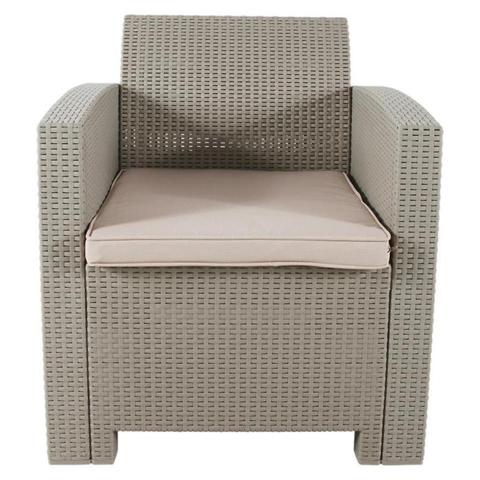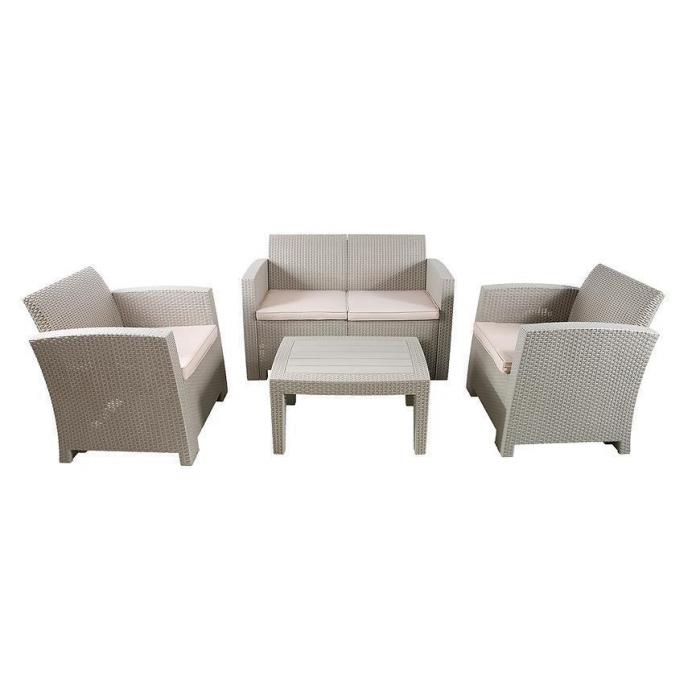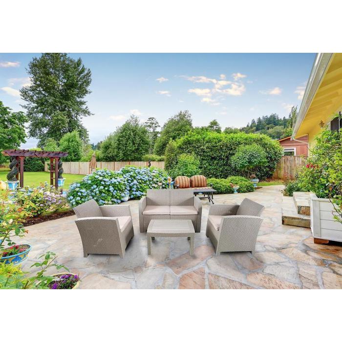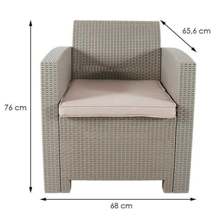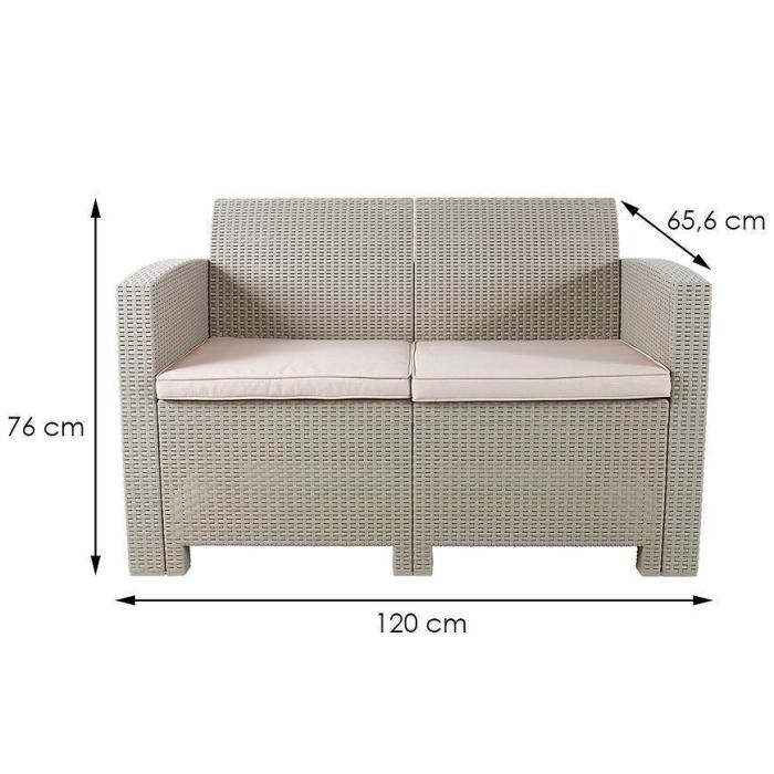 Komplet mebli ogrodowych Anita to doskonała propozycja, która wpasuje się w każdy ogród czy taras. Komplet składa się z dwuosobowej sofy, dwóch foteli z wygodnymi podłokietnikami oraz stolika kawowego. Dodatkowo, na siedziskach zostały umieszczone poduszki, które gwarantują komfort i wygodę podczas użytkowania. Meble wykonane są polipropylenu*, dzięki czemu łatwo utrzymać je w czystości, gdyż nie wchłaniają substancji brudzących.