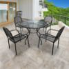 Dla miłośników spędzania czasu na świeżym powietrzu, metalowy komplet mebli ogrodowych 4+1 stanowi doskonałą inwestycję, która zapewnia komfort, styl i trwałość, tworząc idealne miejsce do relaksu i spotkań z bliskimi.