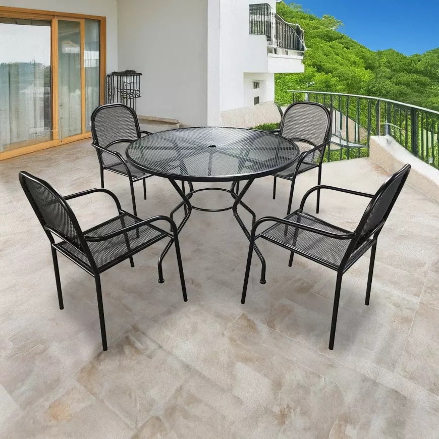 Metalowy komplet mebli ogrodowych 4+1 to połączenie elegancji, funkcjonalności i trwałości, idealne do każdej przestrzeni na świeżym powietrzu. W zestawie znajdują się cztery wygodne krzesła oraz stół o wymiarach 100x100x74 cm, co zapewnia wystarczającą przestrzeń do komfortowego spożywania posiłków i relaksu.
