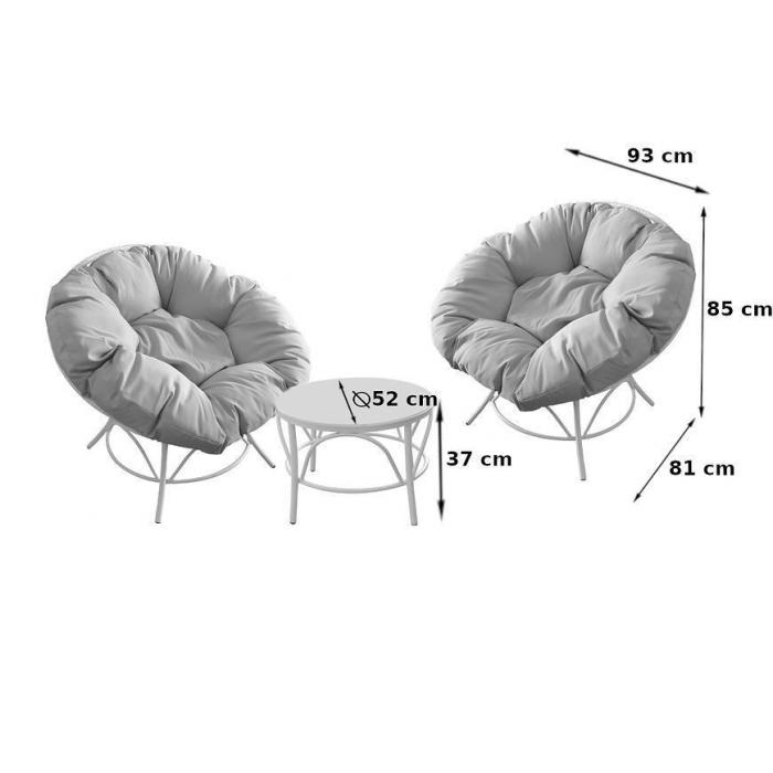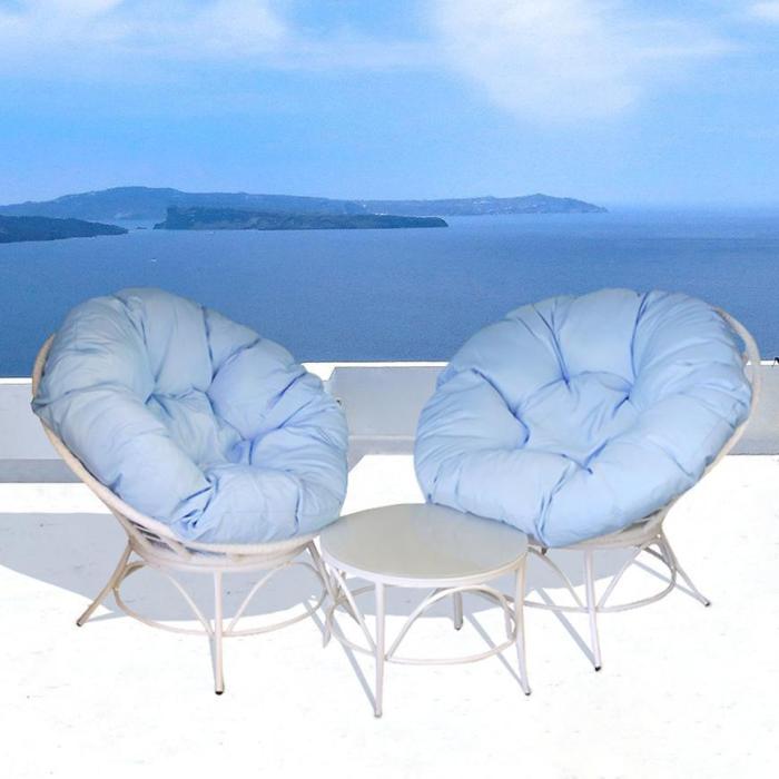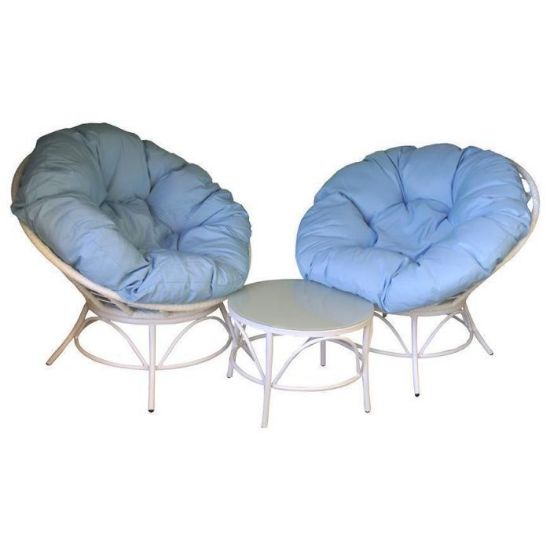 Komplet idealnie wkomponuje się w wystrój balkonu, tarasu czy ogrodu. Sprawdzi się również we wnętrzach. Komplet składa się z dwóch foteli i małego stoliczka kawowego.