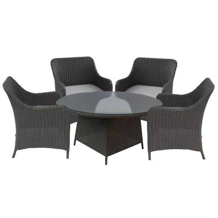 Technorattanowy okragły stół idealnie wpasuje się w kompozycje każdego balkonu, tarasu czy ogrodu. Jego nowoczesny design przypadnie do gustu każdemu. Stół posiada przyssawki, co zapewnia, że blat jest stabilny i nie przesuwa się. Konstrukcja stołu to aluminium, a blat wykonany jest ze szkła hartowanego.