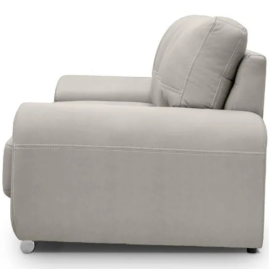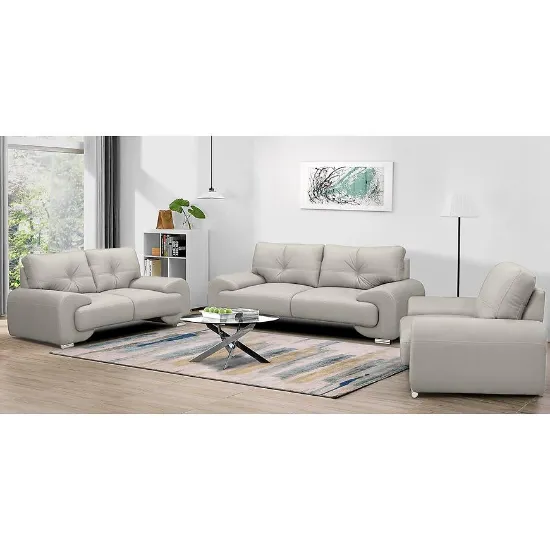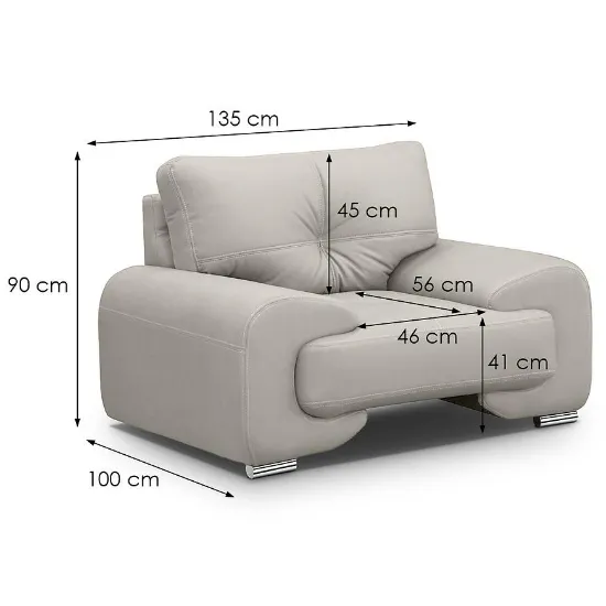 Elegancki komplet wypoczynkowy Omega Lux New 3+2+1 Vega 02 w klasycznym beżowym kolorze to stylowe i wygodne rozwiązanie do salonu. Składa się z dużej sofy trzyosobowej (230 cm), mniejszej dwuosobowej (190 cm) oraz komfortowego fotela (135 cm), zapewniając miejsce do relaksu dla całej rodziny. Wysokiej jakości ekoskóra w połączeniu z wypełnieniem ze sprężyn falistych i pianki HR gwarantuje trwałość i komfort siedzenia. Meble nie posiadają funkcji spania ani pojemników na pościel, co podkreśla ich prostą, nowoczesną formę. Stabilne srebrne nogi dodają lekkości i nowoczesnego charakteru. Komplet dostarczany w całości – nie wymaga montażu. Idealny wybór do wnętrz w stylu nowoczesnym, klasycznym lub minimalistycznym.