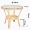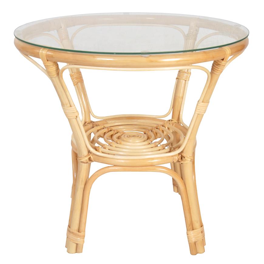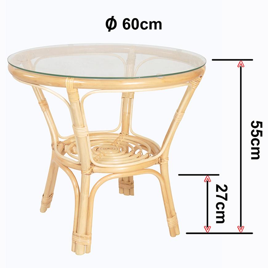 - Stolik o wymiarach 60x60x55 cm z blatem z hartowanego szkła.