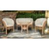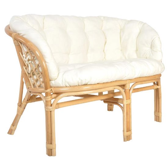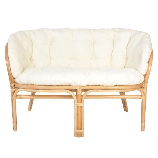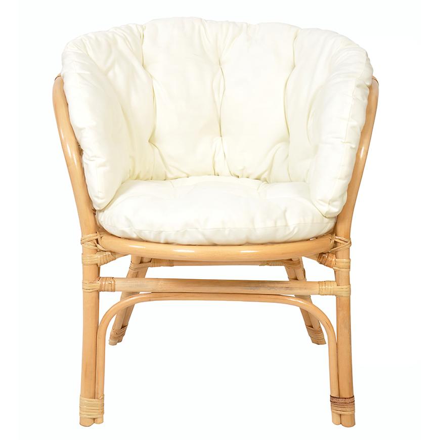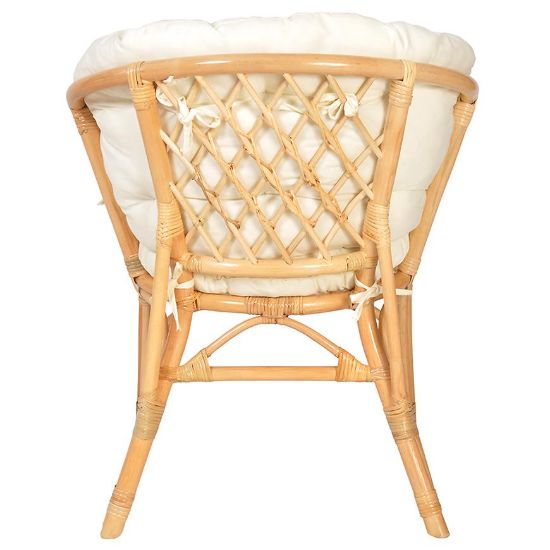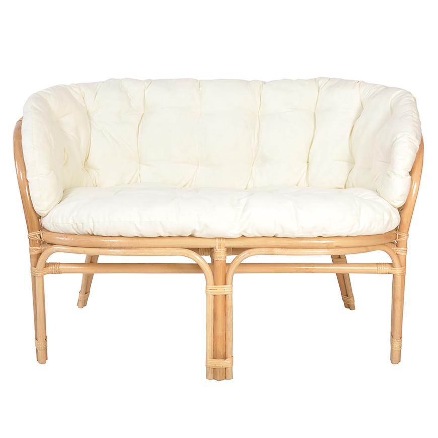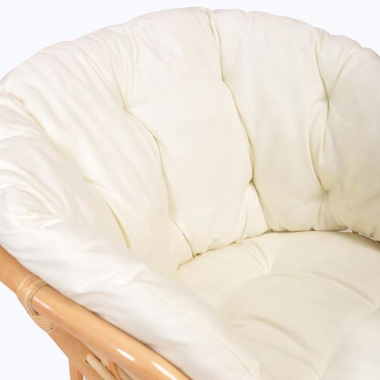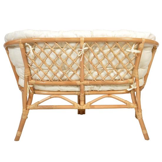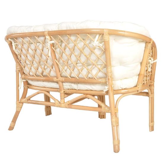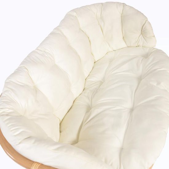 Każdy element zestawu, od sofy po fotele, został precyzyjnie wypleciony ręcznie, co podkreśla jego unikalny charakter. Naturalny kolor rattanu harmonizuje z beżowymi poduszkami, które są nie tylko stylowe, ale również zapewniają dodatkowy komfort użytkowania.