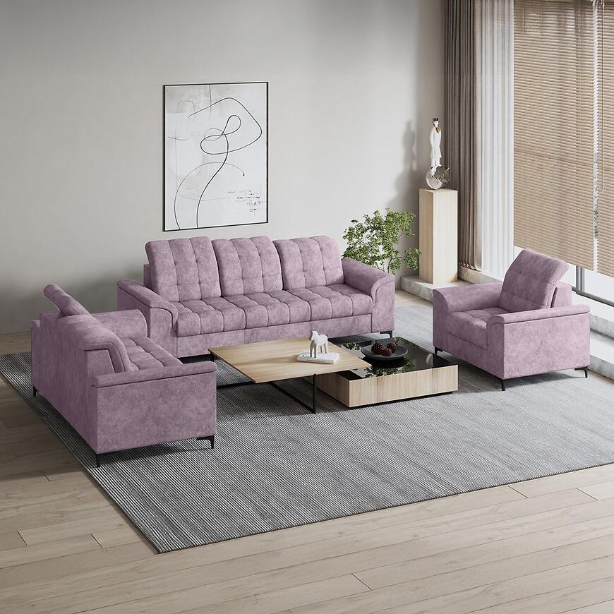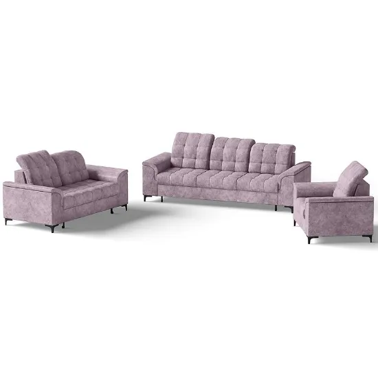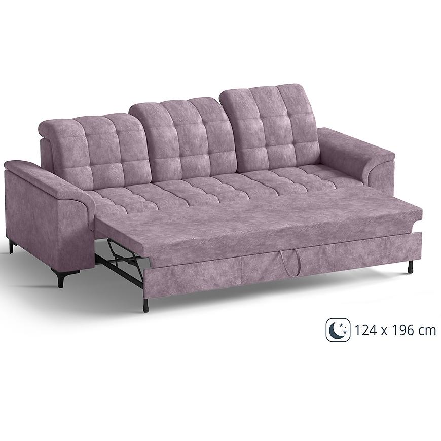 Komplet wypoczynkowy Snap 3+2+1 Bangkok Old to wyjątkowe połączenie elegancji i funkcjonalności. W skład zestawu wchodzi duża sofa z funkcją spania o powierzchni 196x124 cm, mniejsza sofa oraz komfortowy fotel. Tapicerka w subtelnym odcieniu różowym wykonana jest z trwałej tkaniny, która nadaje całości unikalnego charakteru. Komfort użytkowania zapewnia solidne wypełnienie na sprężynie falistej oraz praktyczne regulowane zagłówki. Zestaw wyposażono w schowek na pościel, stabilne czarne nogi oraz intuicyjny system rozkładania delfin, co czyni go propozycją łączącą styl, wygodę i praktyczne rozwiązania.