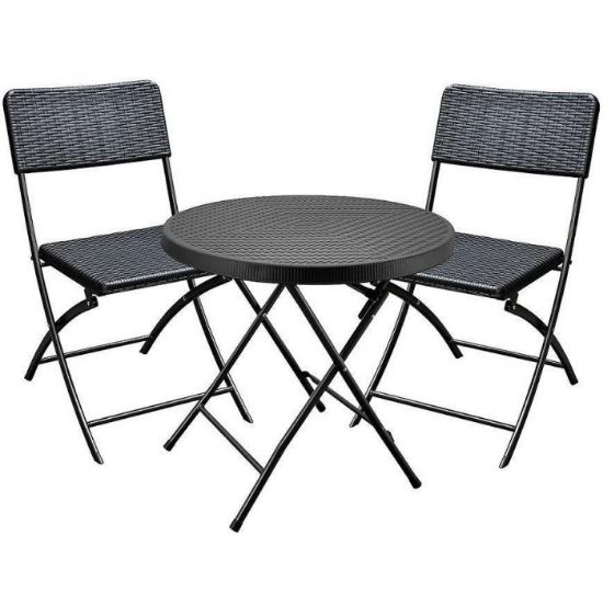 Dodatkowy efekt wizualny nadaje wzór technorattanu. Rama stolika jest metalowa, malowana proszkowo. Dodatkowo, stolik składany jest na płasko, co pozwoli zachować więcej miejsca. Nóżki posiadają antypoślizgowe nakładki.