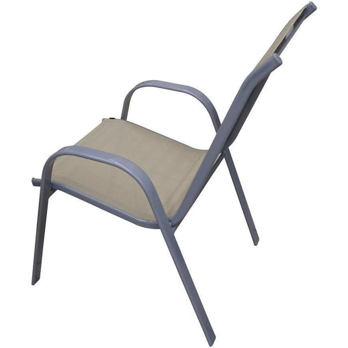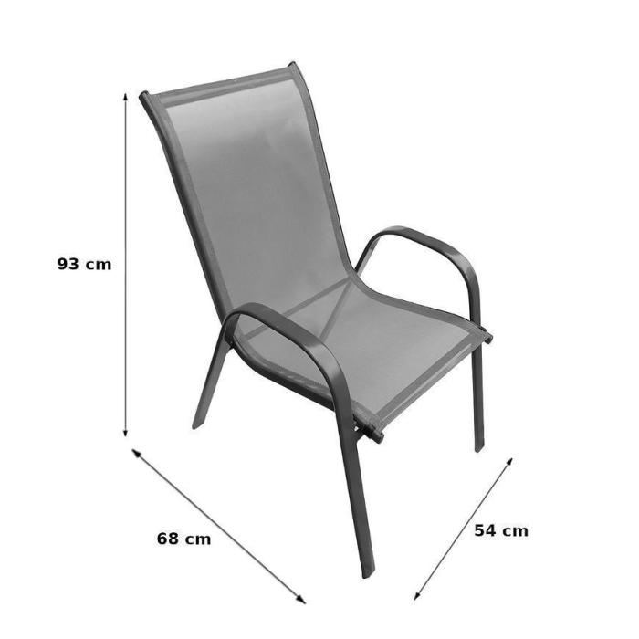 Uniwersalne krzesło zarówno wewnętrzne jak i zewnętrzne. Tkanina, która została naciągnięta maksymalnie, zapewnia komfort i wygodę, nie potrzebne są dodatkowe poduszki. Materiał został opleciony i zszyty na grubych rurach, co sprawia, że nie naciąga się i nie odkształca. Nogi wzmocnione są podwójnie. Rama wykonana jest z metalu i pomalowana proszkowo, dzięki temu jest wytrzymała, a powierzchnia jest gładka i błyszcząca. Krzesło jest łatwe w utrzymaniu czystości, wystarczy przetrzeć materiał wilgotną szmatką.