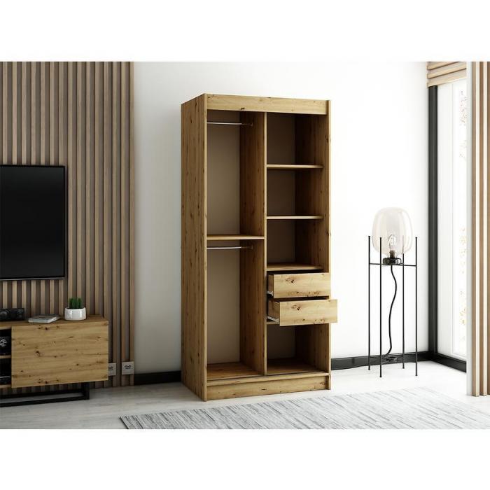 Komplet Szuflad to idealne uzupełnienie Naszej szafy wykonanej z płyty wiórowej laminowanej w kolorze dąb artisan. Szafy Lamelo to praktyczny i funkcjonalny mebel, który posiada dużo miejsca do przechowywania. Konstrukcja szafy jest wytrzymała i stabilna. Szafa świetnie sprawdzi się w różnych aranżacjach, szczególnie w stylu loftowym.