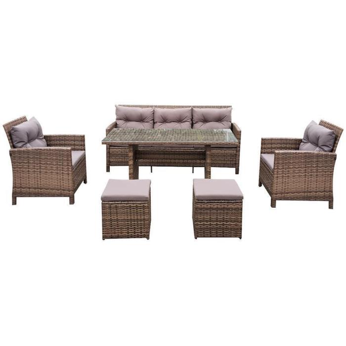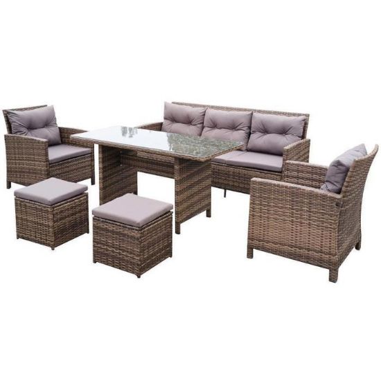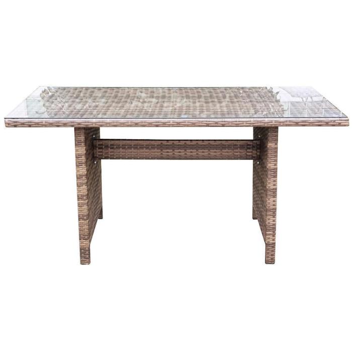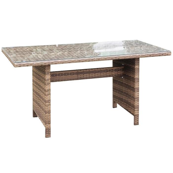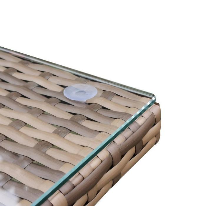 Komplet mebli technorattanowych to idealne rozwiązanie do każdego ogrodu czy na taras gdzie z przyjemnością spędzisz wszystkie letnie popołudnia i weekendy wraz ze znajomymi czy rodziną. Blat stolika jest wytrzymały, wykonany bowiem ze szkła hartowanego, konstrukcja z kolei jest metalowa.