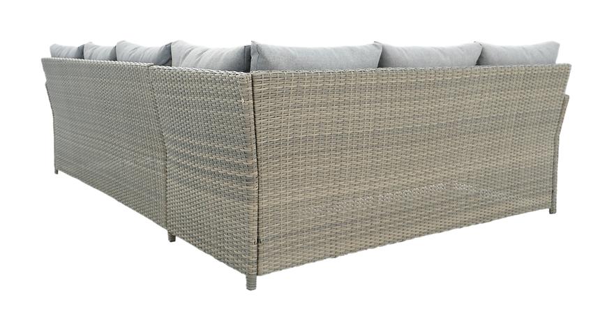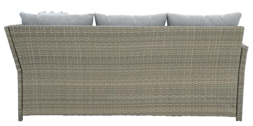 Konstrukcja mebli została oparta na solidnym metalowym stelażu, który gwarantuje stabilność i odporność na obciążenia. Powierzchnia została pokryta wysokiej jakości technorattanem, odpornym na zmienne warunki atmosferyczne, promieniowanie UV oraz wilgoć. Dzięki temu meble zachowują swój wygląd i kolor przez wiele sezonów, a ich pielęgnacja ogranicza się do minimum.