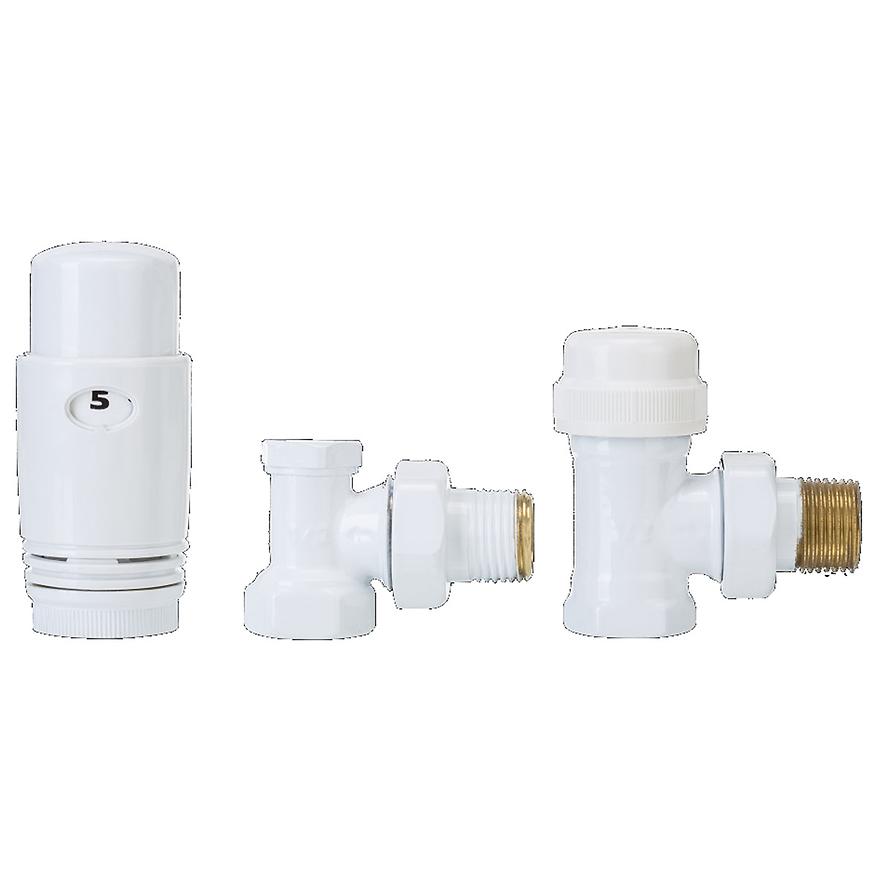 Ten biały komplet termostatyczny kątowy nie tylko gwarantuje efektywną kontrolę temperatury w pomieszczeniach, ale także prezentuje się estetycznie, doskonale komponując się z różnymi stylami aranżacji wnętrz.