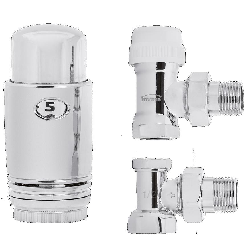 Ten chromowany komplet termostatyczny kątowy nie tylko gwarantuje efektywną kontrolę temperatury w pomieszczeniach, ale także prezentuje się elegancko, dodając nowoczesności i stylu do otoczenia.