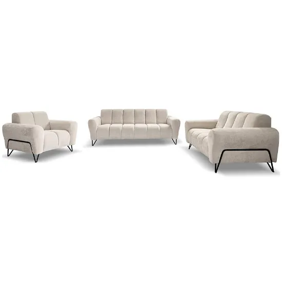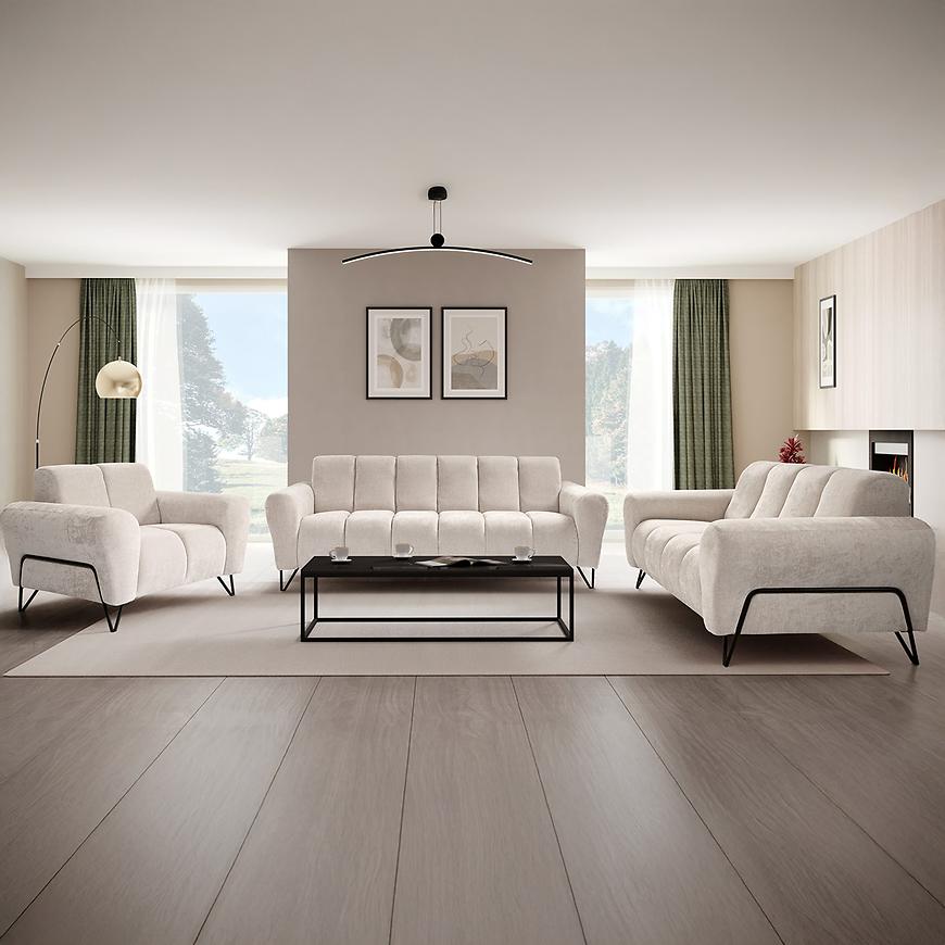 Komplet wypoczynkowy Volare 3+2+1 Vega to idealne rozwiązanie dla osób ceniących komfort i nowoczesny design w salonie. Składa się z przestronnej sofy trzyosobowej o wymiarach 220x98x83 cm, sofki dwuosobowej 160x98x83 cm oraz wygodnego fotela 100x98x83 cm, które razem tworzą spójną i funkcjonalną aranżację. Tapicerka wykonana z wysokiej jakości tkaniny zapewnia przyjemną w dotyku powierzchnię, a zastosowanie sprężyn falistych w połączeniu z pianką HR gwarantuje wyjątkowy komfort siedzenia i trwałość na lata. Czarna kolorystyka nóg dodaje meblom elegancji i stabilności, wpisując się w nowoczesne wnętrza. Kompletny zestaw Volare Vega nie tylko podkreśla styl pomieszczenia, ale także sprawia, że każda chwila spędzona w salonie staje się przyjemnością.
