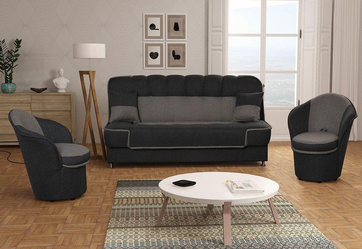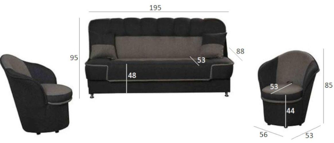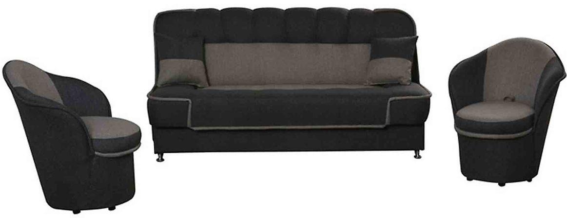 Wygodny zestaw mebli wypoczynkowych, który idealnie wkomponuje się w klasyczne wnętrze.Komfortowa kanapa wpasuje się nawet do niewielkiego wnętrza. Dzięki brakowi podłokietników powierzchnia użytkowa kanapy jest większa. Duża powierzchnia spania i praktyczny pojemnik na pościel to atuty zachęcające do zakupu. W skład kompletu wchodzą również dwa wygodne fotele na drewnianych stelażach.