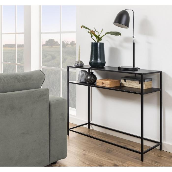 Minimalistyczna, prosta konsolka Alabama świetnie sprawdzi sie w stylowych, modernistycznych wnętrzach i loftowych aranżacjach. Może pełnić funkcję konsolki w przedpokoju, gdzie pozostawiamy niezbędne drobiazgi tj. klucze do mieszkania czy rękawiczki, ale także konsoltki w salonie czy sypialni, na której położymy elegancki wazon z kwiatami, pamiątkę z ubiegłych wakacji czy ulubione książki, które chcemy mieć pod ręką. Konstrukcja konsolki jest bardzo stabilna dzięki metalowej konstrukcji oraz poprzeczne wspierające metalowe elementy. Dzięki swojej prostej konstrukcji, wąskim wymiarom konsolka jest bardzo ustawna.