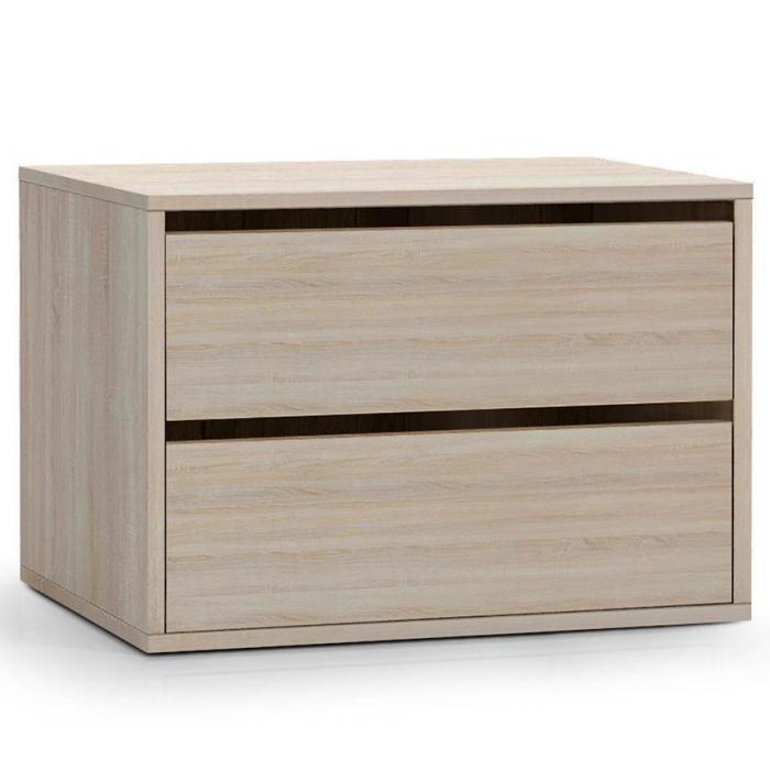 Kontener do szafy w kolorze dąb sonoma został wykonany z płyty laminowanej. Kontener posiada dwie szuflady. Dopełnieniem, uzupełnieniem, a także zmianą funkcjonalności mebla będzie wybór kontenera.