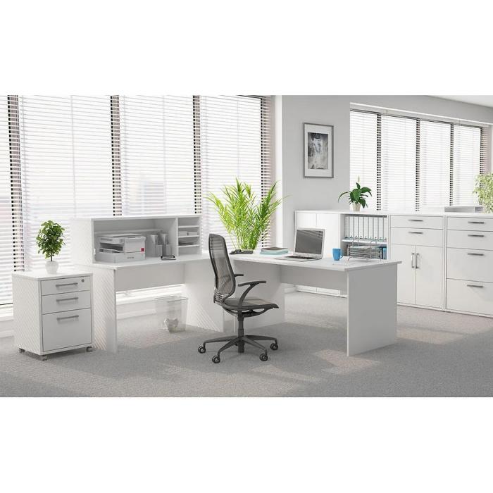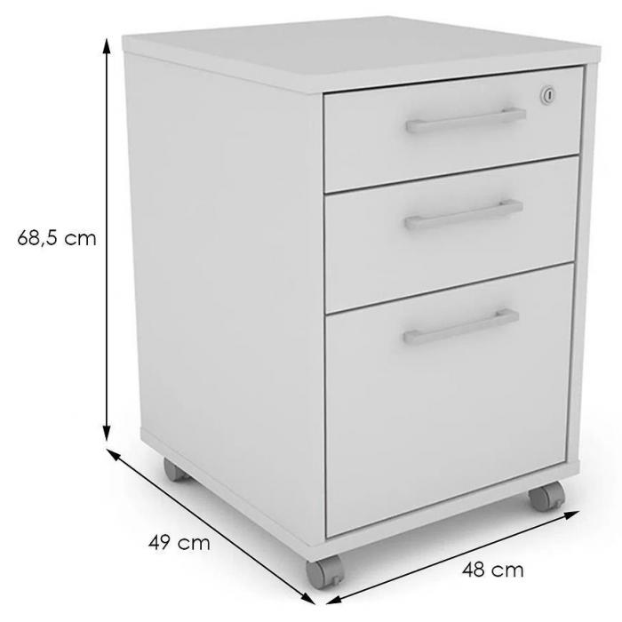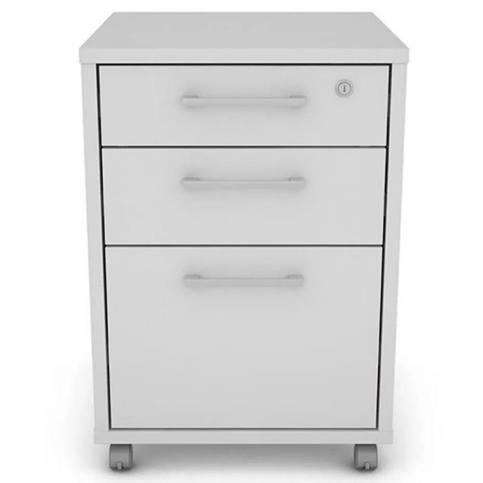 Kontenerek Torino wykonany z płyty wiórowej laminowanej, posiada trzy szuflady, w których można schować potrzebne przedmioty. Kontenerek będzie pasował do biurka z tej samej kolekcji.
