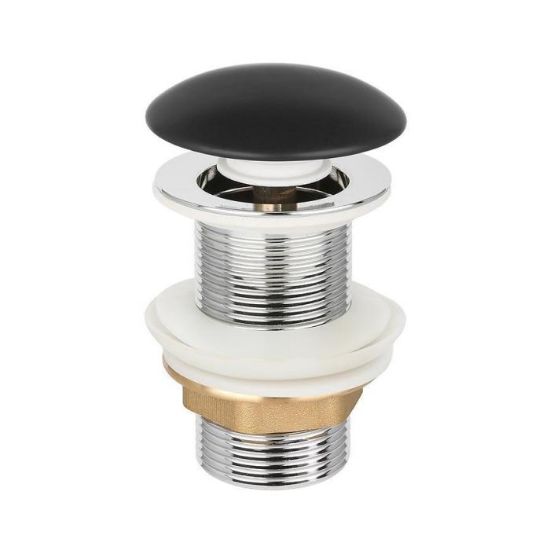 Korek click clack maskuje otwór odpływowy i doskonale będzie wyglądał w połączeniu z bielą lub czernią ceramiki.