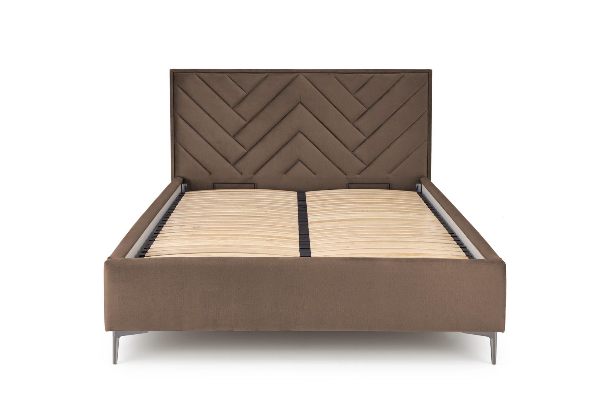Wymiary korpusu łóżka (208/175/44 cm) zapewniają wystarczająco dużo miejsca do relaksu, jednocześnie pozostając proporcjonalnym elementem aranżacji wnętrza. Stylowy materiał, jakim jest miękki velvet, nadaje łóżku luksusowy charakter, a jednocześnie tworzy przyjemną powierzchnię do wypoczynku. Niezwykle praktycznym elementem tego łóżka jest wbudowany pojemnik na pościel, który umożliwia schowanie kołder, poduszek czy innych tekstyliów, co jest szczególnie istotne w przypadku pomieszczeń, gdzie każdy centymetr przestrzeni jest cenny. Podnoszony stelaż z odstępem 2,5 cm między listwami gwarantuje wszechstronne zastosowanie różnych typów materacy, dając użytkownikowi swobodę wyboru w kwestii komfortu snu. To rozwiązanie sprawdza się szczególnie dobrze, pozwalając dostosować łóżko do indywidualnych preferencji i potrzeb użytkownika.