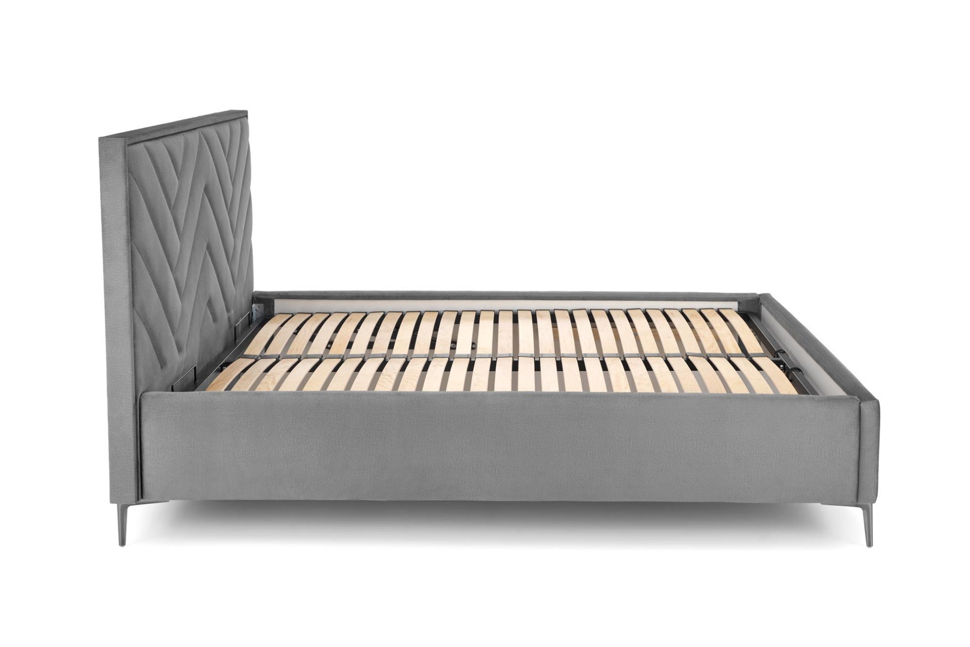 Wymiary korpusu łóżka (208/175/44 cm) zapewniają wystarczająco dużo miejsca do relaksu, jednocześnie pozostając proporcjonalnym elementem aranżacji wnętrza. Stylowy materiał, jakim jest miękki velvet, nadaje łóżku luksusowy charakter, a jednocześnie tworzy przyjemną powierzchnię do wypoczynku. Niezwykle praktycznym elementem tego łóżka jest wbudowany pojemnik na pościel, który umożliwia schowanie kołder, poduszek czy innych tekstyliów, co jest szczególnie istotne w przypadku pomieszczeń, gdzie każdy centymetr przestrzeni jest cenny. Podnoszony stelaż z odstępem 2,5 cm między listwami gwarantuje wszechstronne zastosowanie różnych typów materacy, dając użytkownikowi swobodę wyboru w kwestii komfortu snu. To rozwiązanie sprawdza się szczególnie dobrze, pozwalając dostosować łóżko do indywidualnych preferencji i potrzeb użytkownika.
