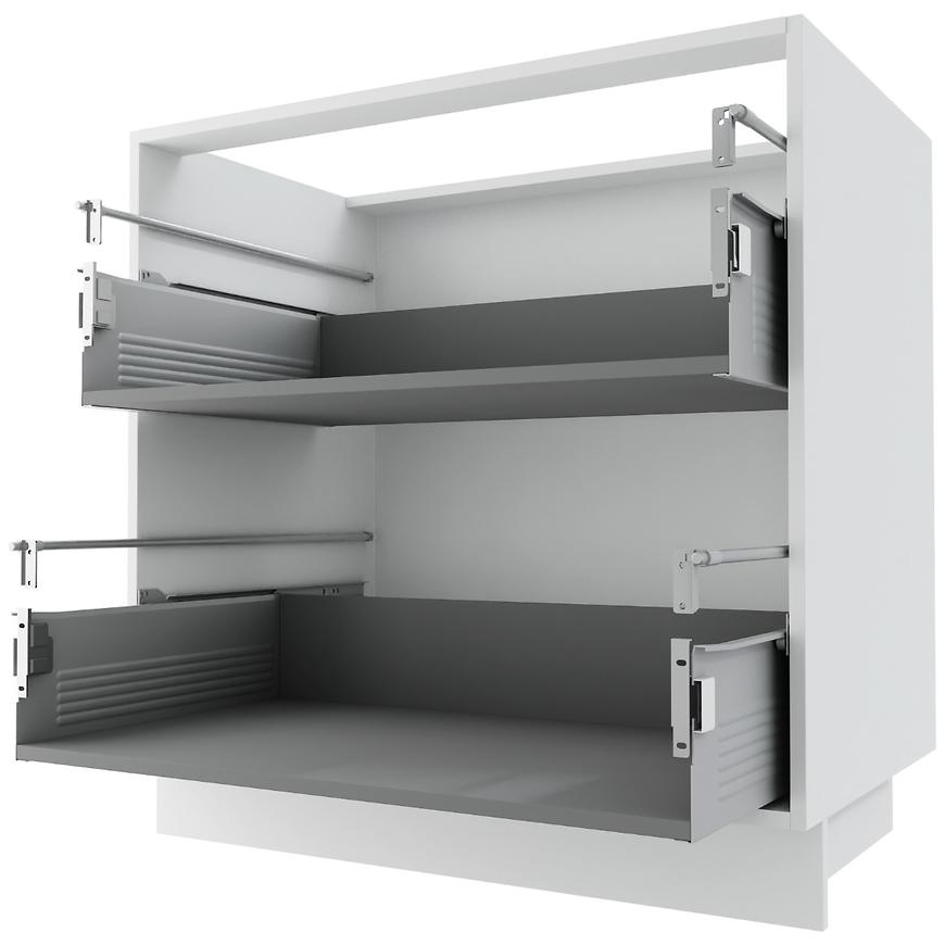 Fronty w kolekcji Platinium wykonane zostały z wysokiej jakości MDF-u, co gwarantuje trwałość, odporność na wilgoć i estetyczny wygląd na lata. Ich połysk nadaje wnętrzu efekt świeżości i optycznie powiększa przestrzeń. W przeciwieństwie do błyszczących frontów, korpusy mebli, wykonane z płyty wiórowej laminowanej, wykończono w matowym stylu, co tworzy elegancki kontrast. Całość dostępna jest w klasycznym kolorze white, który idealnie wpisuje się zarówno w nowoczesne, jak i bardziej tradycyjne aranżacje kuchenne.