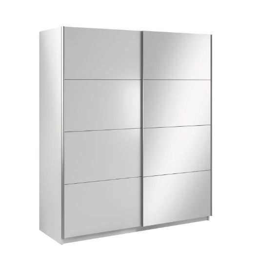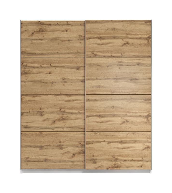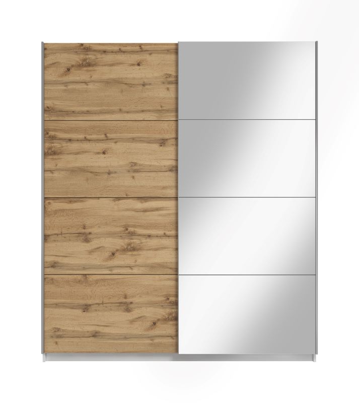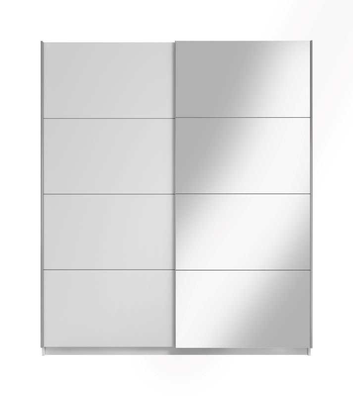 Szafa dwudrzwiowa Asti 180 to doskonała propozycja do sypialni, a także do przedpokoju. Korpus szafy wykonany jest w kolorze biały mat, fronty dostępne w kolorach: biały mat, biały mat z lustrem, dąb wotan, dąb wotan z lustrem. Korpus i fronty w matowym wykończeniu. Szafa posiada drzwi przesuwne oraz uchwyty relingowe w kolorze srebrnym.