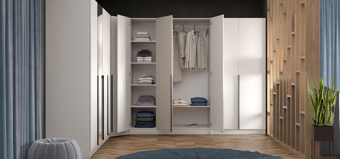 połączenie szafy klasycznej z narożną w układzie L.