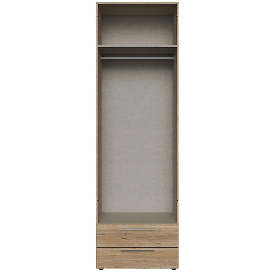 Korpus szafy Moduklix w kolorze dąb mauvella to idealne rozwiązanie do aranżacji garderoby, sypialni lub przedpokoju. Jasne, drewnopodobne wybarwienie optycznie powiększa przestrzeń i doskonale wpisuje się w nowoczesne wnętrza.