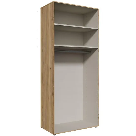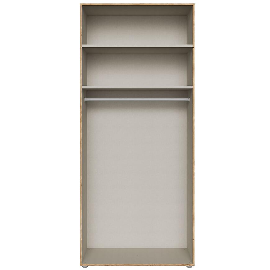 Korpus szafy Moduklix w kolorze dąb mouvella to praktyczne rozwiązanie do sypialni, garderoby lub przedpokoju. Jasne, drewnopodobne wybarwienie optycznie powiększa przestrzeń i harmonijnie wpisuje się w nowoczesne wnętrza.
