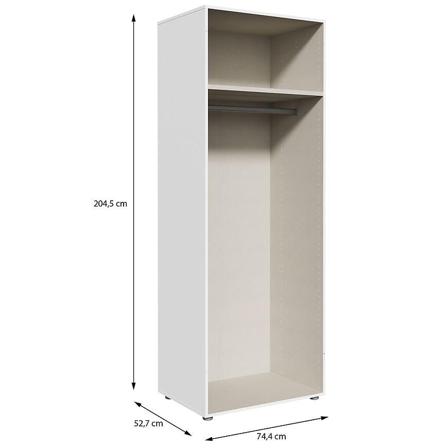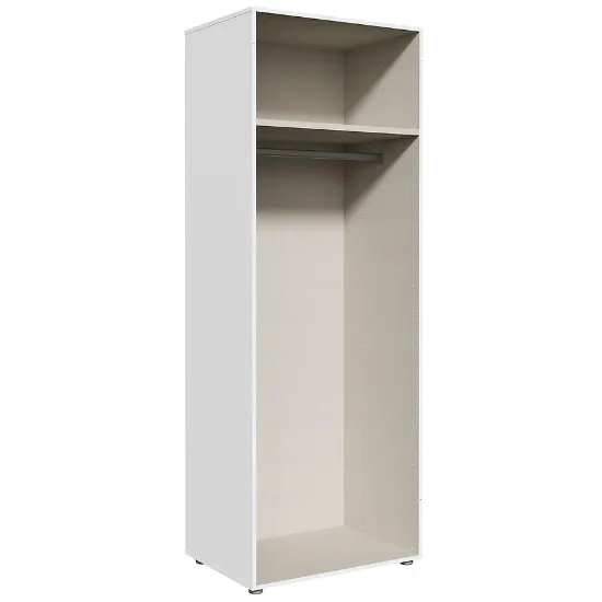 Korpus Szafy Modulix to wybór dla osób poszukujących nowoczesnej, trwałej i funkcjonalnej szafy w białym kolorze, która dopasuje się do różnych aranżacji wnętrz i zapewni komfortowe przechowywanie.