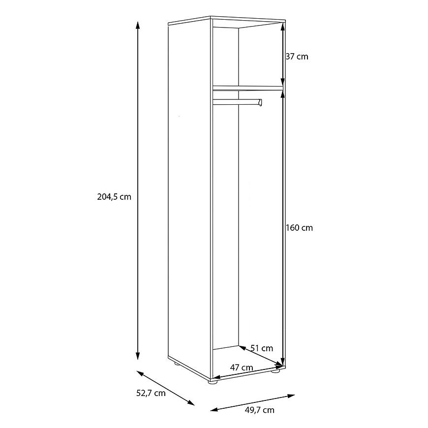 Korpus Szafy Modulix w wybarwieniu dąb Cabezone to propozycja dla osób ceniących nowoczesny styl. Szafa o wymiarach 204,5 cm wysokości, 49,7 cm szerokości oraz 52,7 cm głębokości zapewnia wygodną przestrzeń do przechowywania ubrań i akcesoriów. Wykonana z płyty wiórowej laminowanej, charakteryzuje się trwałością oraz odpornością na codzienne użytkowanie. Matowe wykończenie podkreśla strukturę drewna i nadaje meblowi elegancki wygląd.