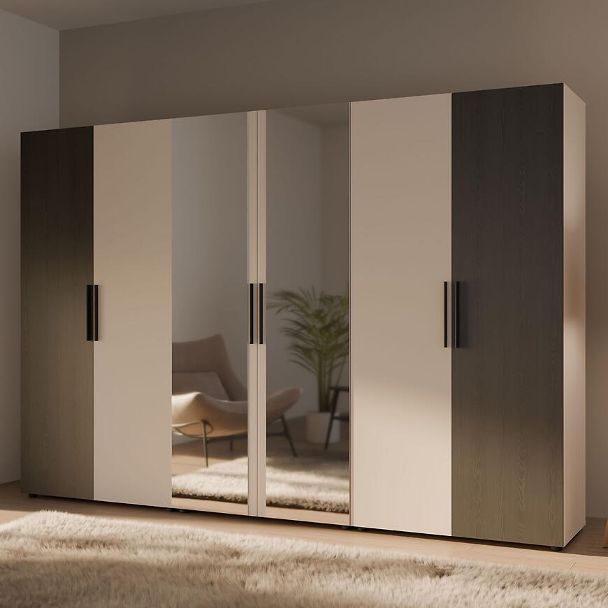 Zastosowanie płyty laminowanej sprawia, że szafa jest odporna na zarysowania i łatwa w pielęgnacji. To praktyczne rozwiązanie do codziennego użytkowania w sypialni, garderobie czy przedpokoju.
