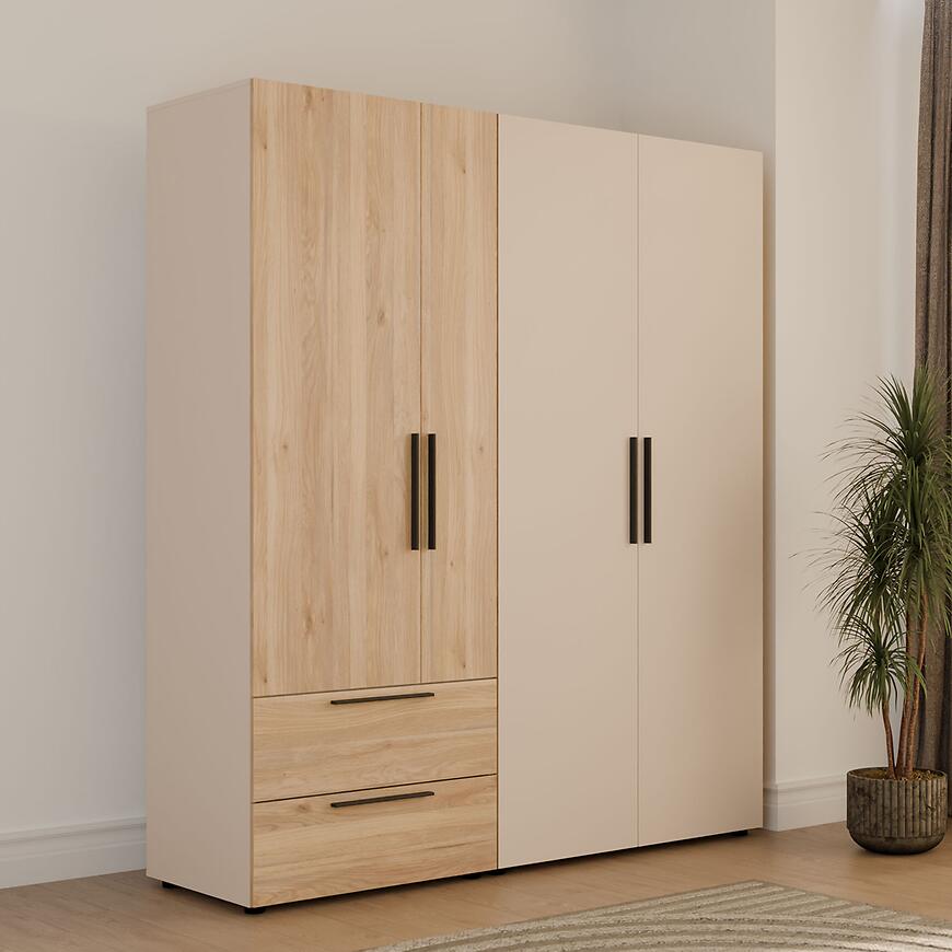 Korpus szafy Modulix w kolorze dąb piaskowy to funkcjonalna baza do stworzenia nowoczesnej i praktycznej garderoby. Jasne, drewnopodobne wybarwienie wprowadza naturalny akcent i optycznie rozjaśnia przestrzeń, doskonale komponując się z różnymi aranżacjami wnętrz.