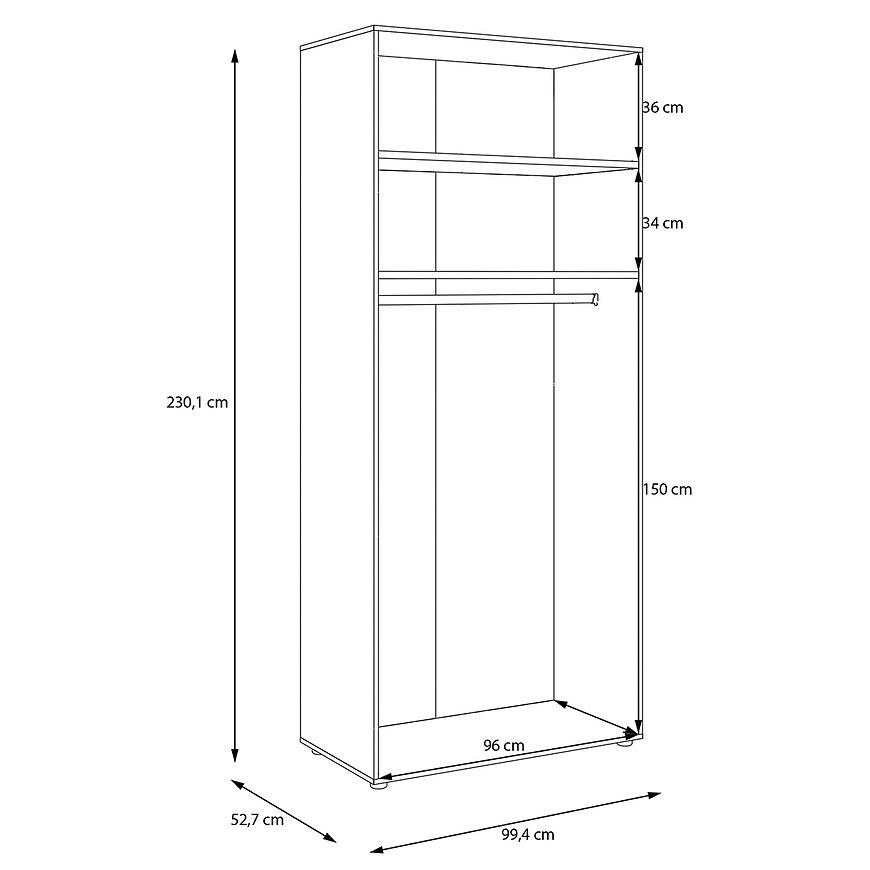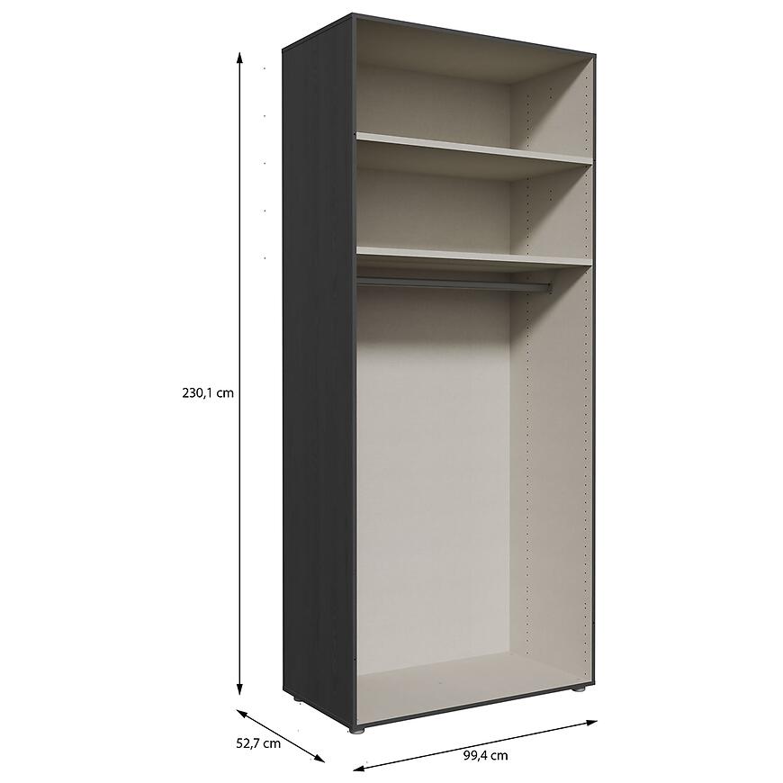 Korpus Szafy Modulix w wybarwieniu dąb Cabezone to propozycja dla osób ceniących nowoczesny styl. Szafa o wymiarach 230,1 cm wysokości, 99,4 cm szerokości oraz 52,7 cm głębokości zapewnia wygodną przestrzeń do przechowywania ubrań i akcesoriów. Wykonana z płyty wiórowej laminowanej, charakteryzuje się trwałością oraz odpornością na codzienne użytkowanie. Matowe wykończenie podkreśla strukturę drewna i nadaje meblowi elegancki wygląd.