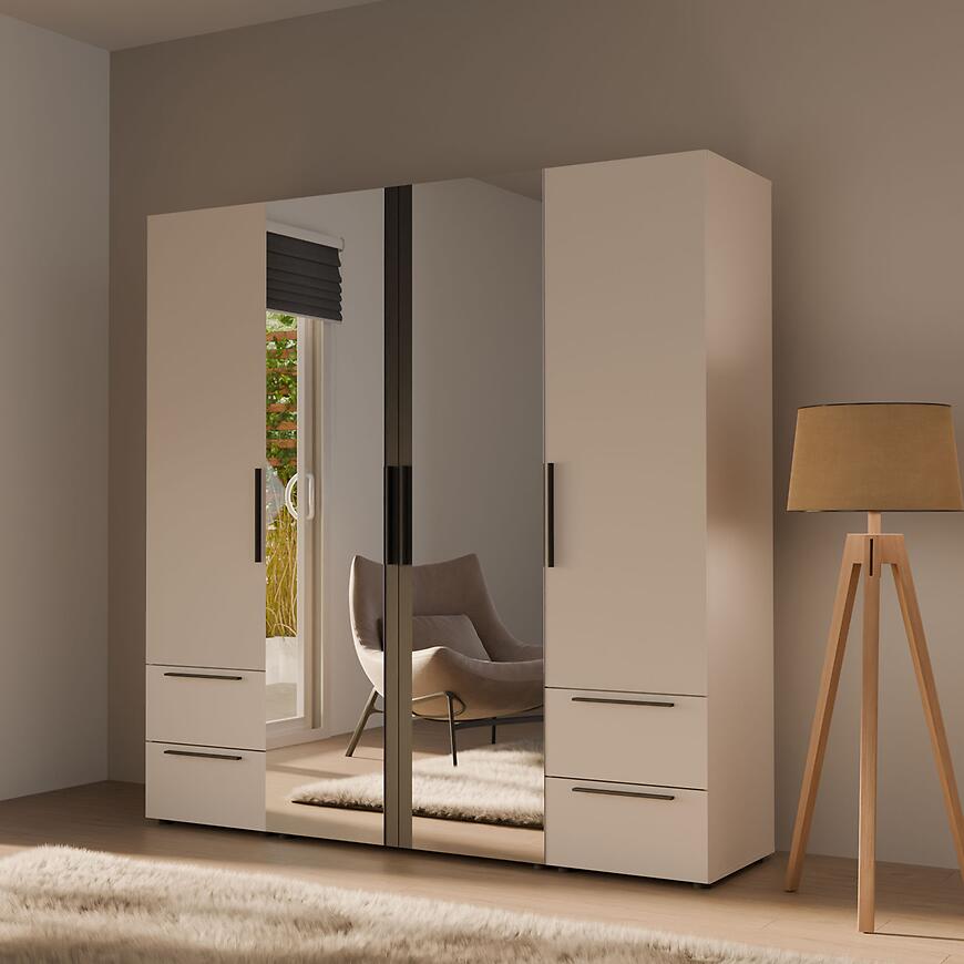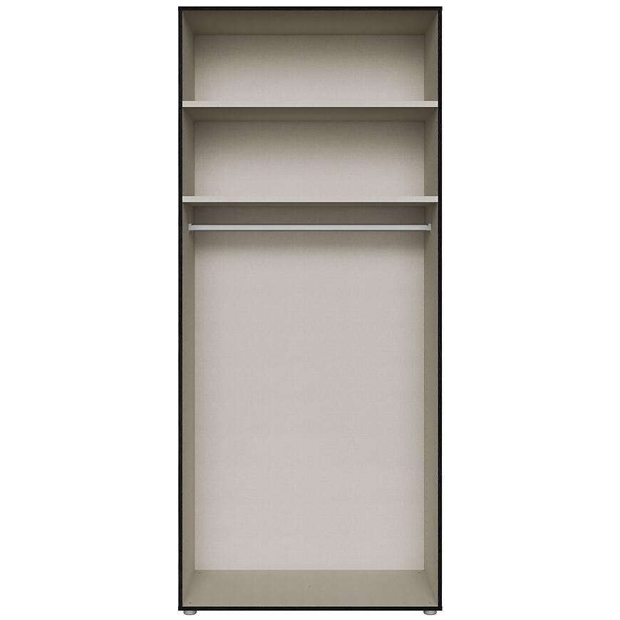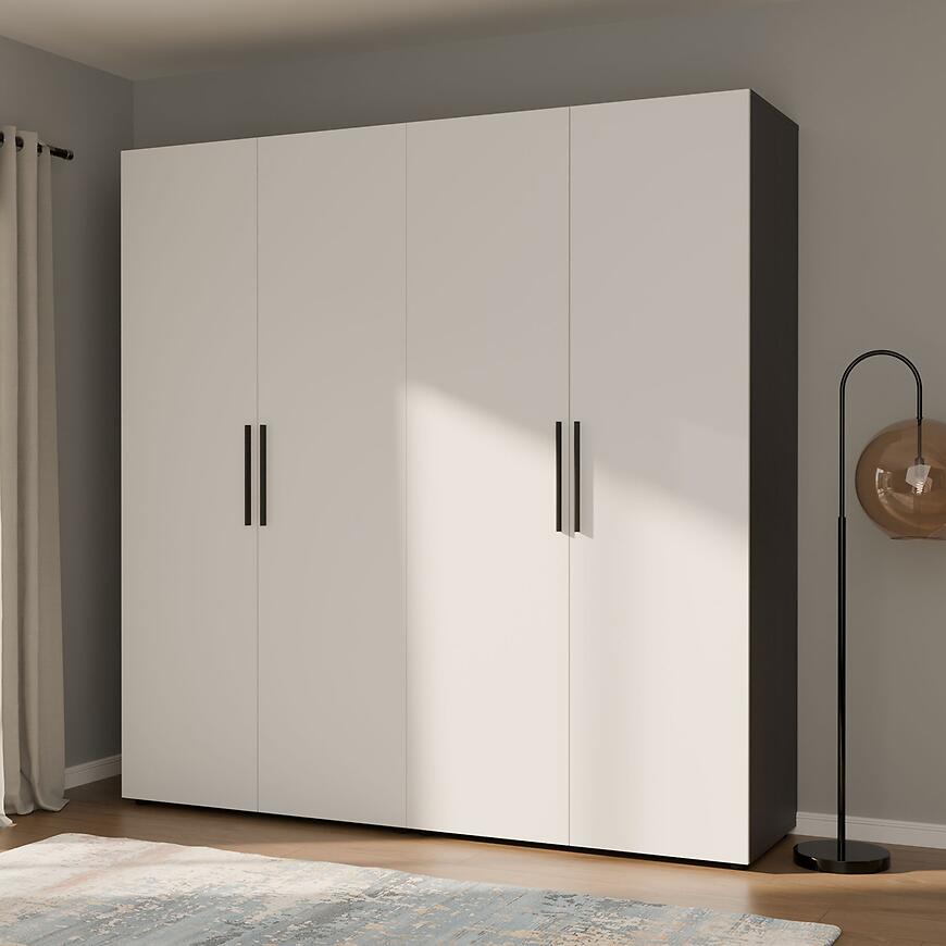 Zastosowanie płyty laminowanej sprawia, że szafa jest odporna na zarysowania i łatwa w pielęgnacji. To praktyczne rozwiązanie do codziennego użytkowania w sypialni, garderobie czy przedpokoju.