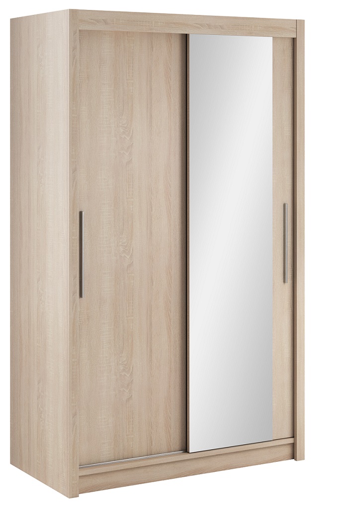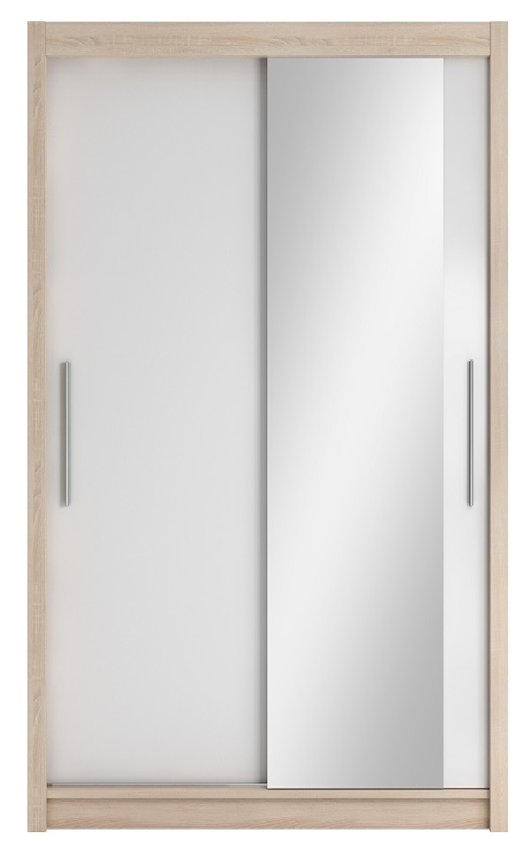 Szafa z drzwiami przesuwnymi Verona to doskonały wybór do garderoby, przedpokoju, salonu czy sypialni. Kolor frontów i korpusu sprawiają, że wpasuje się w większość aranżacji. Jej wnętrze jest pojemne i pomieści zarówno ubrania jak i inne akcesoria. Szafa jest 2-drzwiowa. Dodatkowym atutem jest lustro, które powiększy optycznie pomieszczenie.