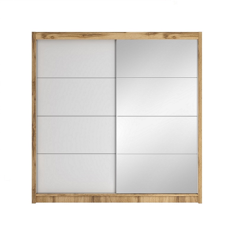 Szafa z drzwiami przesuwnymi Verona to doskonały wybór do garderoby, przedpokoju, salonu czy sypialni. Kolor frontów i korpusu sprawiają, że wpasuje się w większość aranżacji. Jej wnętrze jest pojemne i pomieści zarówno ubrania jak i inne akcesoria. Szafa jest 2-drzwiowa. Dodatkowym atutem jest lustro, które powiększy optycznie pomieszczenie.