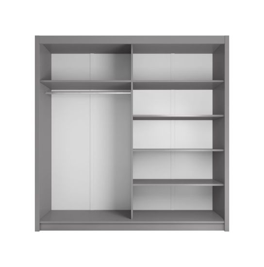 Szafa z drzwiami przesuwnymi Verona to doskonały wybór do garderoby, przedpokoju, salonu czy sypialni. Kolor frontów i korpusu sprawiają, że wpasuje się w większość aranżacji. Jej wnętrze jest pojemne i pomieści zarówno ubrania jak i inne akcesoria. Szafa jest 2-drzwiowa. Dodatkowym atutem jest lustro, które powiększy optycznie pomieszczenie.