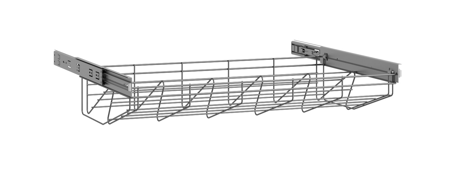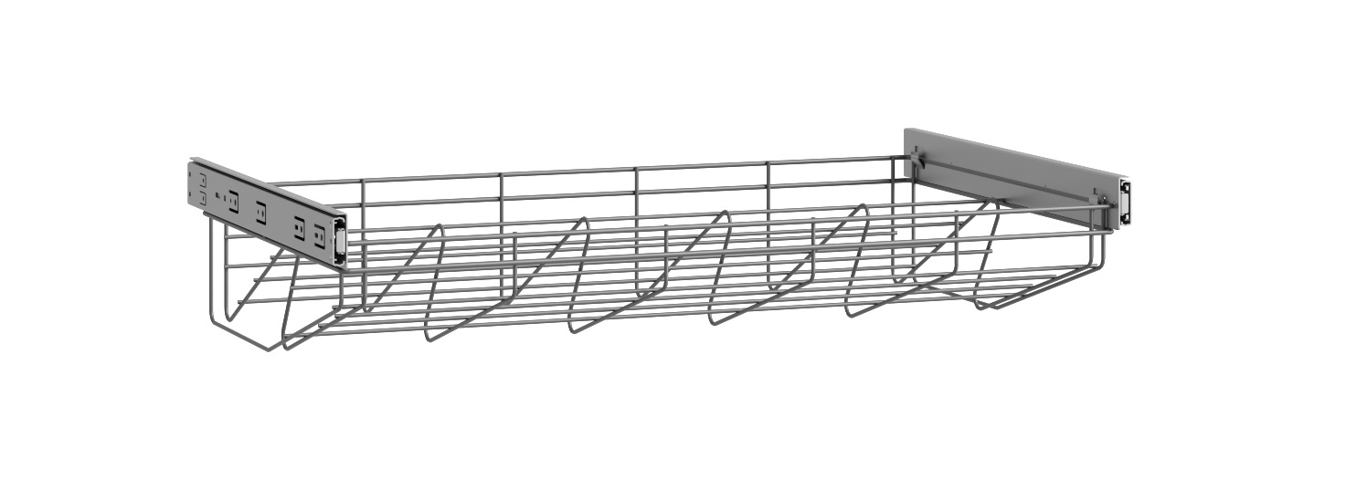 Metalowy kosz na buty mocowany do wewnętrznego boxu SHMC181 w szafie Ossett SHM S92411. Cena za jeden kosz. W szafie Ossett można zamontować maksymalnie trzy kosze.