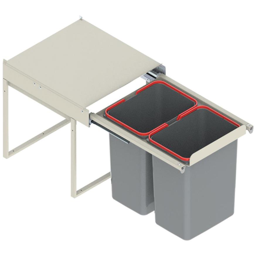 Kosz jest wyposażony w pokrywę, która skutecznie zabezpiecza śmieci przed nieprzyjemnymi zapachami i owadami. Pokrywa jest również wyposażona w prowadnice kulkowe pełnego wysuwu oraz miękki dociąg, co sprawia, że otwieranie i zamykanie kosza jest łatwe i ciche. Uchwyty ułatwiają przenoszenie kosza i opróżnianie wiader. Dzięki nim nie musisz się martwić o zabrudzenia rąk podczas codziennego korzystania z kosza.