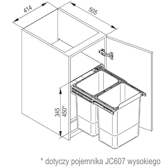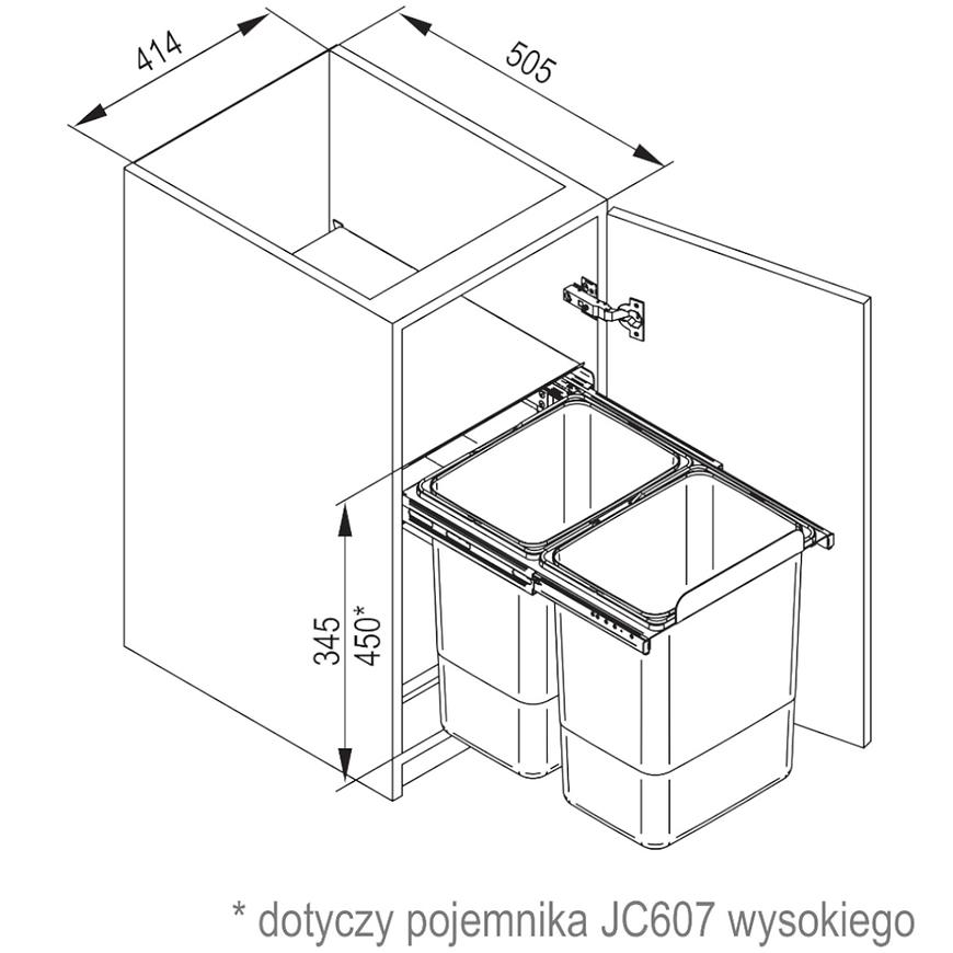 Kosz na śmieci Jc607 Podwójny to doskonałe rozwiązanie do utrzymania Twojej kuchni w porządku i czystości. Kosz psoiada podwójne wiadra o pojemności 2x15 litrów, co oznacza, że możesz segregować wszystko w jednym miejscu. To nie tylko praktyczne, ale także przyjazne dla środowiska rozwiązanie.