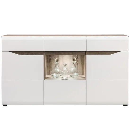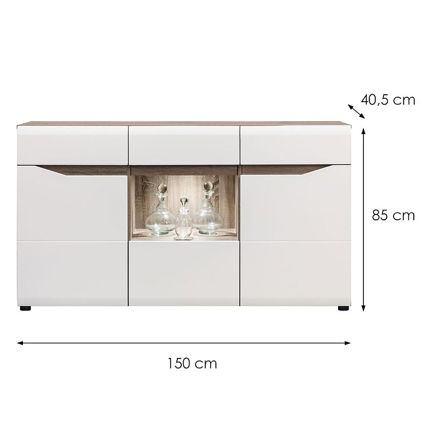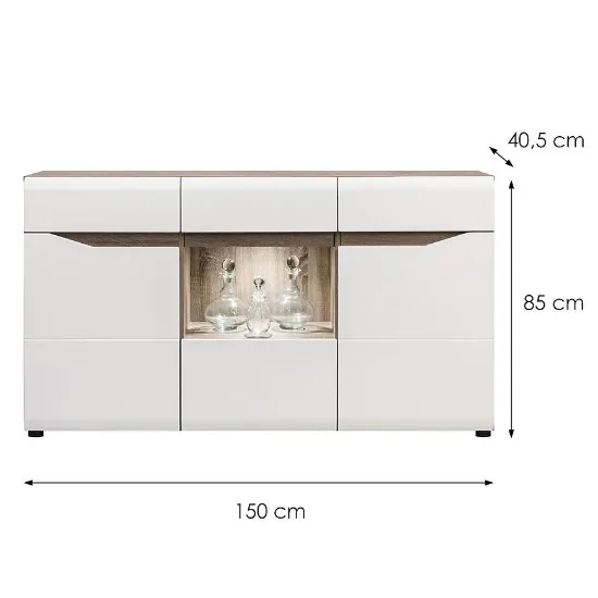 Kredens Lionel Li04 Dąb S./Biały to elegancki i funkcjonalny mebel, idealny do nowoczesnych wnętrz. Połączenie ciepłego odcienia dębu sonoma z białymi frontami nadaje mu lekkości i stylowego charakteru. Przestronne szafki i półki zapewniają dużo miejsca do przechowywania zastawy stołowej, dekoracji czy innych przedmiotów. Doskonały do salonu, jadalni lub kuchni, łącząc estetykę z wygodą użytkowania.